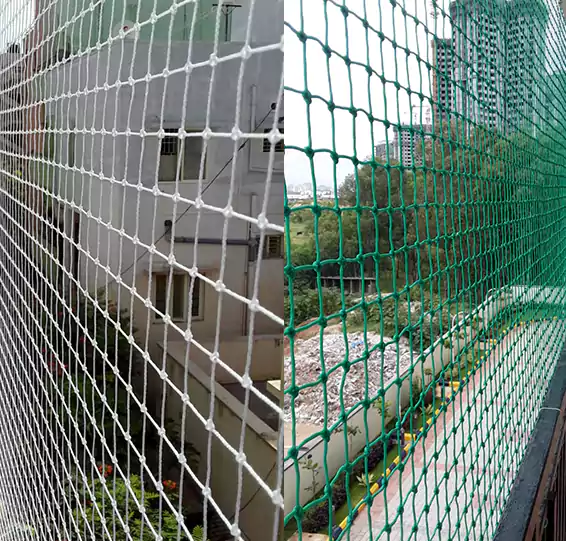 We are skilled experts in installing a wide range of safety nets, including Balcony Safety Nets, Pigeon Safety Nets, Anti Bird Nets, Pigeon Nets for Balconies, Cricket Practice Nets, Children Safety Nets, Construction Safety Nets, Duct Area Safety Nets, Building Safety Nets, Industrial Safety Nets, Swimming Pool Safety Nets, Stairway Safety Nets, Monkey Safety Nets, Terrace Top Nets, Glass Safety Nets, Car Parking Safety Nets, Coconut Tree Nets, and all types of HDPE and Nylon Nets.